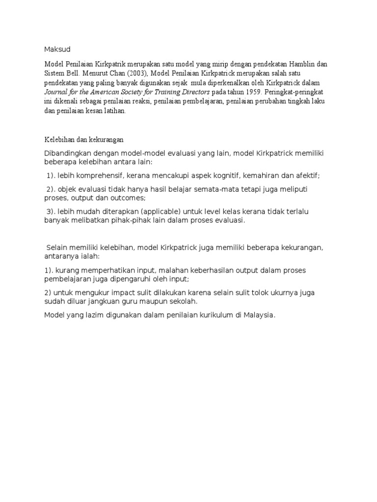 Kekuatan Dan Kelemahan Model Kirpatrick - [DOCX Document]