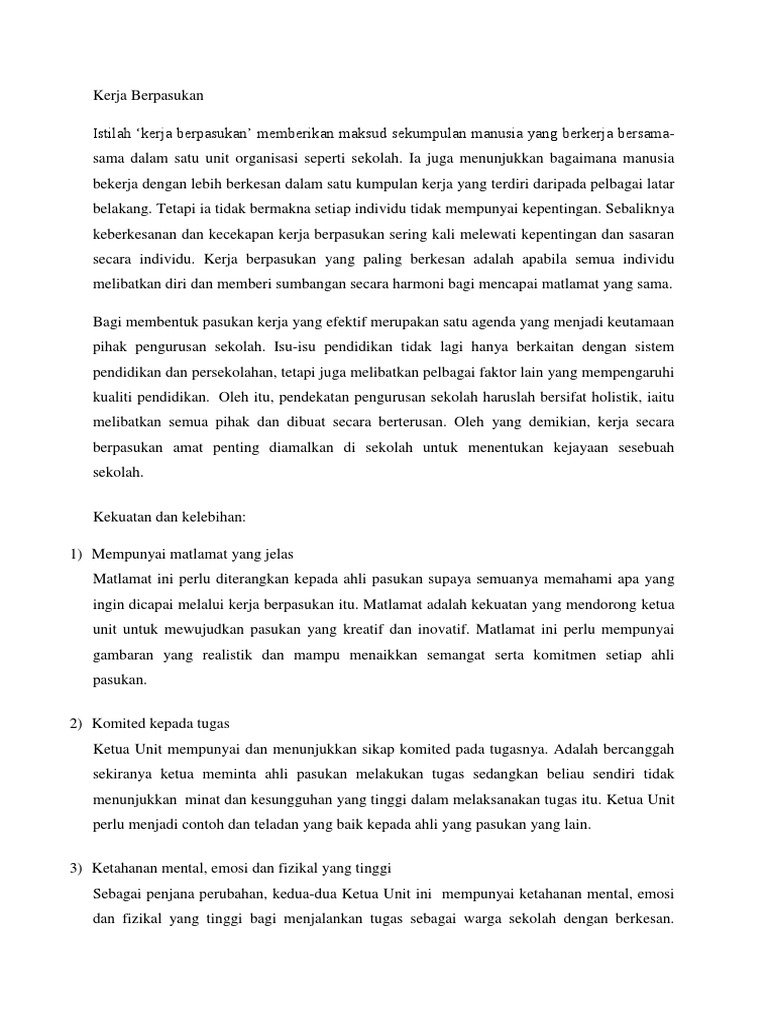 Kelebihan Dan Kekuatan Kerja Berpasukan