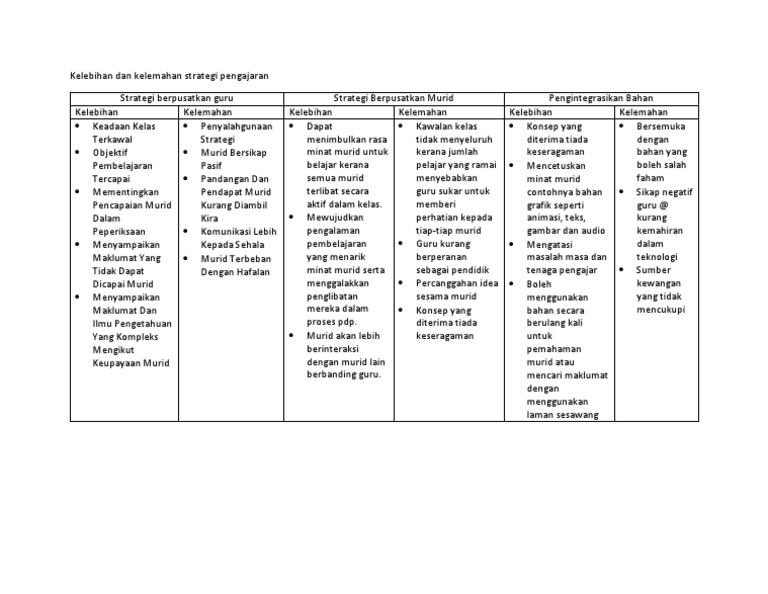 Kelebihan Dan Kelemahan Strategi Pengajaran