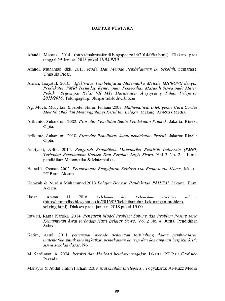 Daftar Pustaka: Kelebihan dan Kelemahan Problem Solving