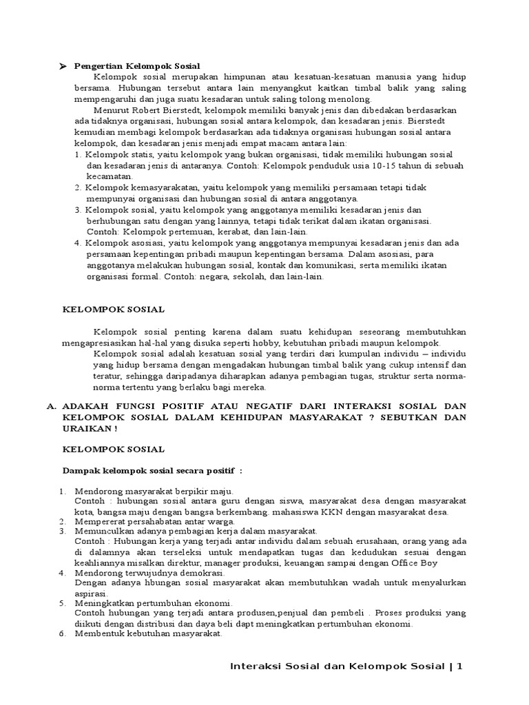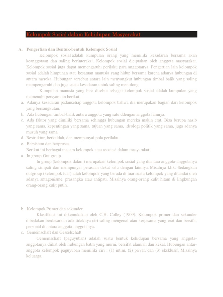 DOC) Kelompok Sosial dalam Kehidupan Bermasyarakat | Astrid …