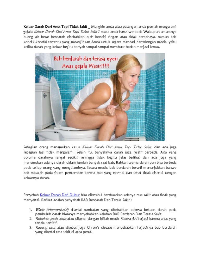 Keluar Darah Dari Anus Tapi Tidak Sakit