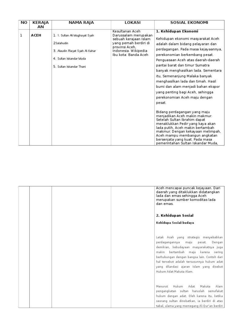NO Keraja AN Nama Raja Lokasi Sosial Ekonomi