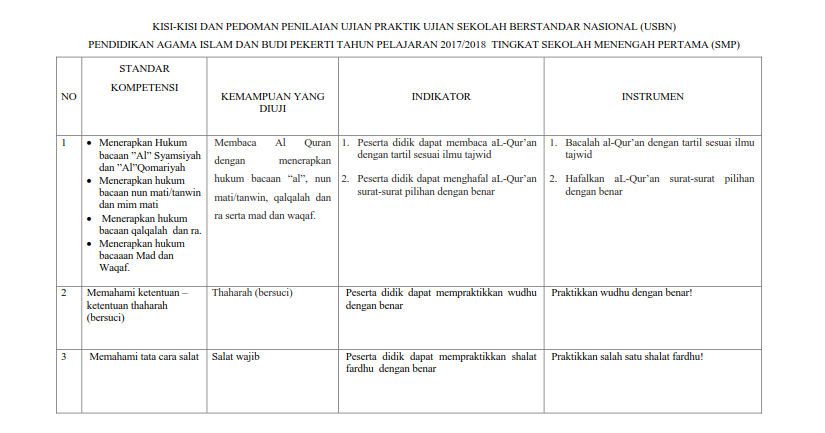 Kisi-Kisi Ujian Praktek PAI Tahun 2018 dan Panduan USBN PAI KTSP …