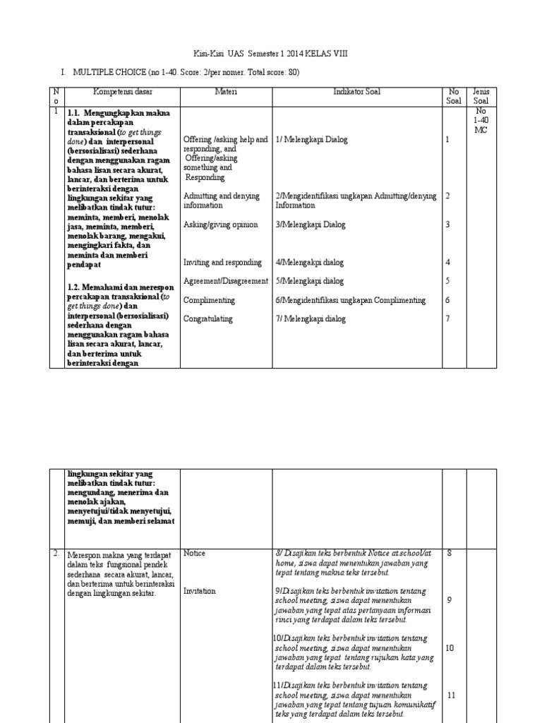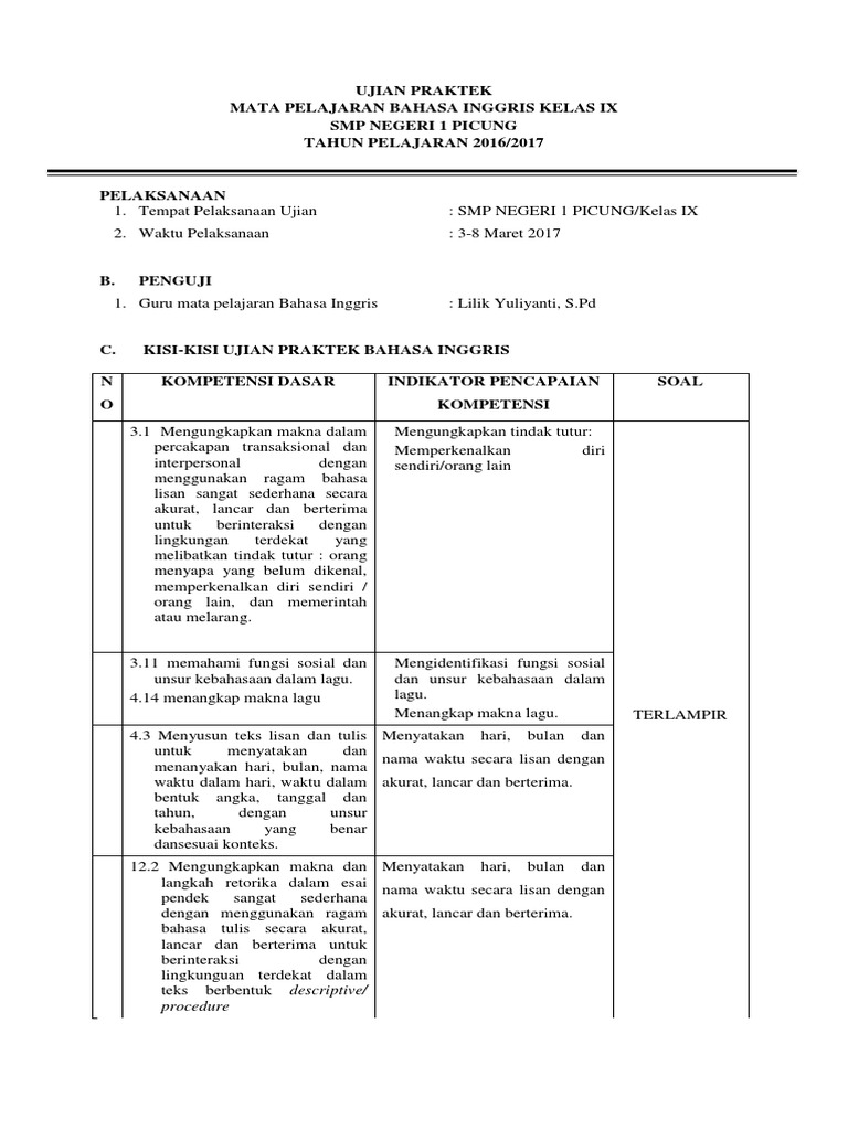 Contoh Kisi Kisi Ujian Praktek Bahasa Inggris Smp - Barisan Contoh
