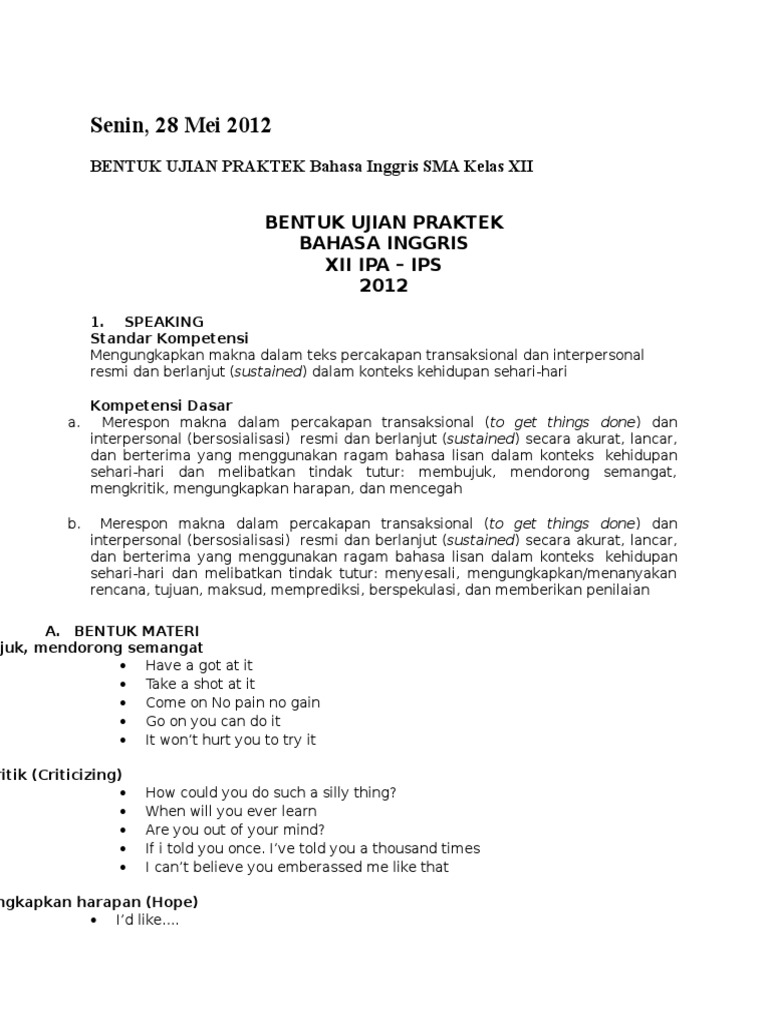 Kisi Kisi Ujian Praktek Bahasa Inggris Sma Kurikulum 2013 …