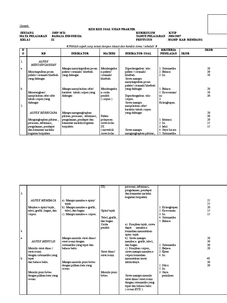 Format Kisi Kisi Ujian Praktek Smp – IlmuSosial.id