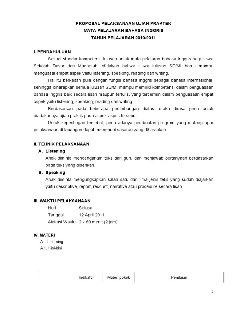 DOC) Kisi dan Soal Ujian Bahasa Inggris Praktik SD | ari yuniarti …