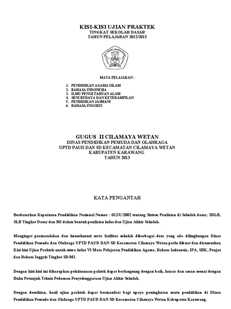 Kisi-Kisi Ujian Praktik SD Berdasarkan Kurikulum 2013 tahun 2020 …