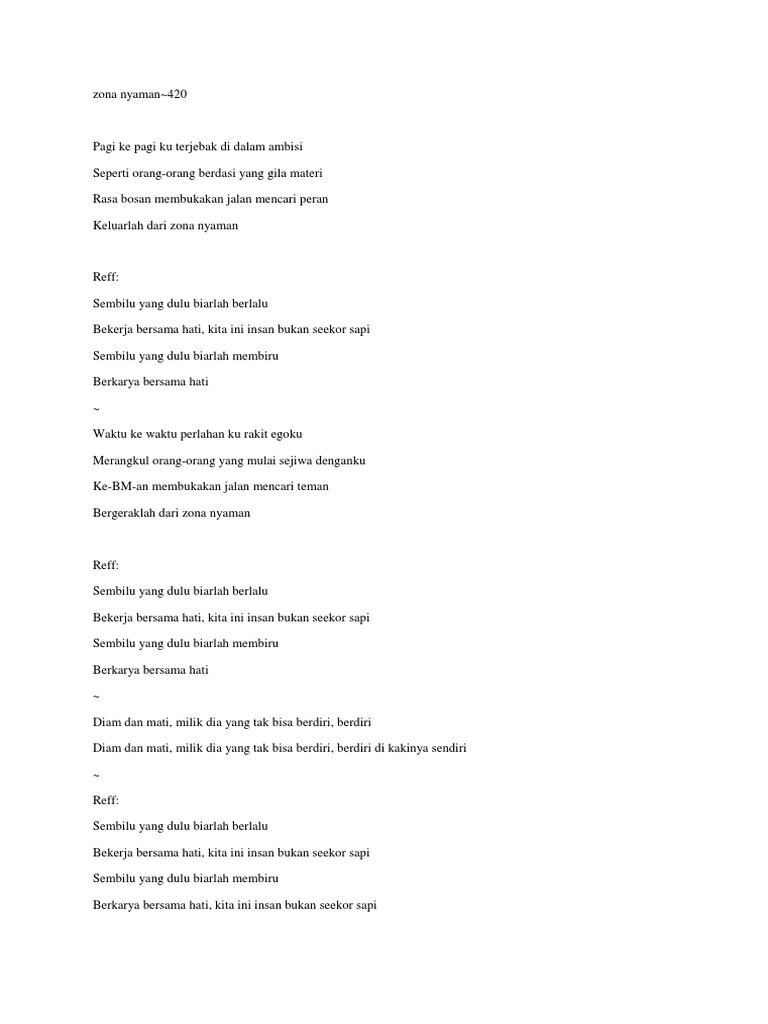 Lirik Lagu - ZONA NYAMAN - FOURTWNTY (LIRIK) | Facebook