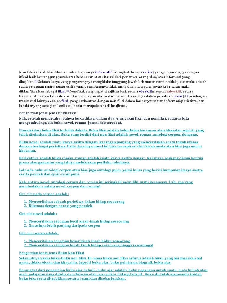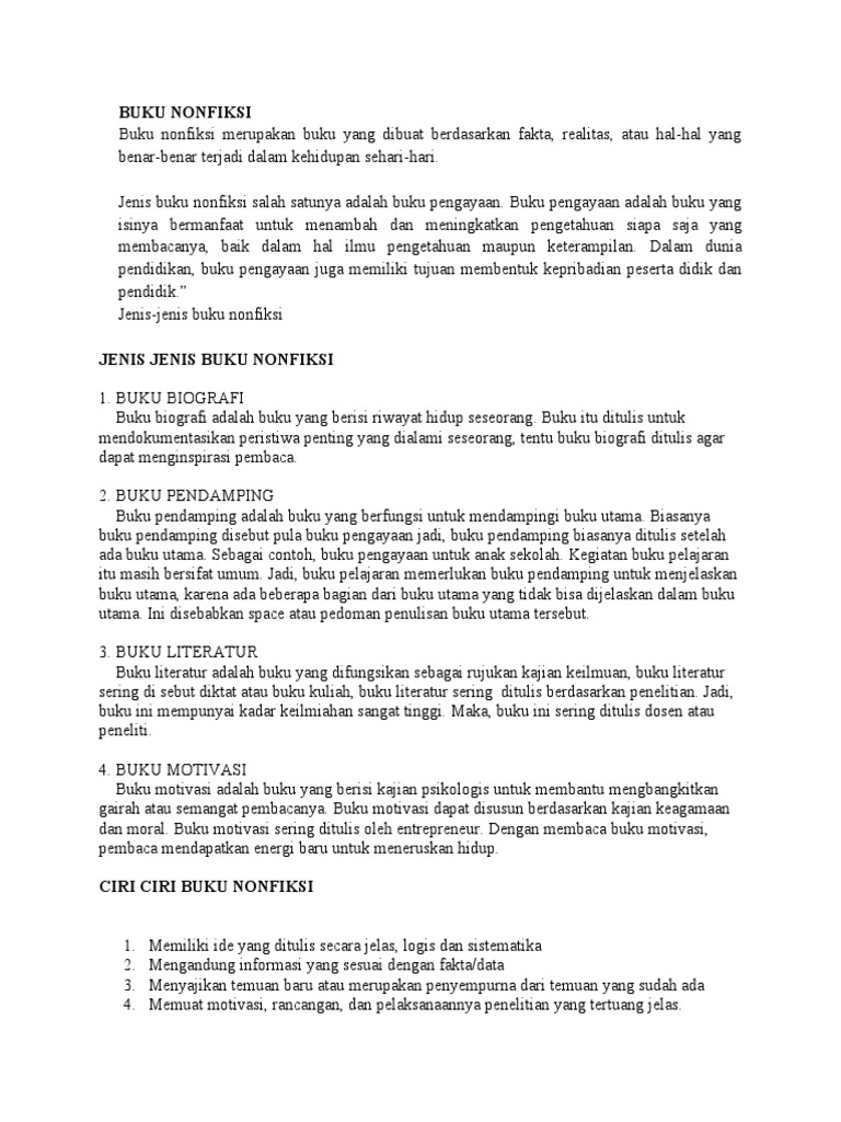 Materi.docx - Bab I Pendahuluan 1.1 LATAR BELAKANG Non-fiksi adalah klasifikasi untuk setiap karya informatif(seringkali berupa cerita yang pengarangnya | Course Hero