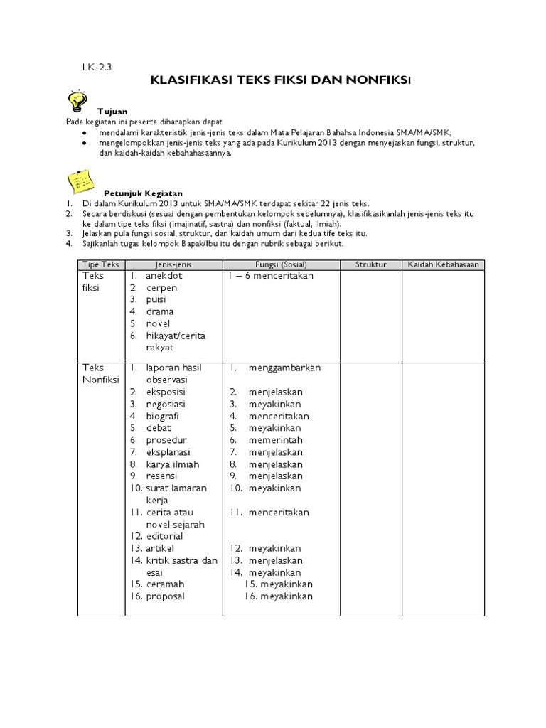 LK-2.3 Klasifikasi Teks Fiksi-Nonfiksi.docx