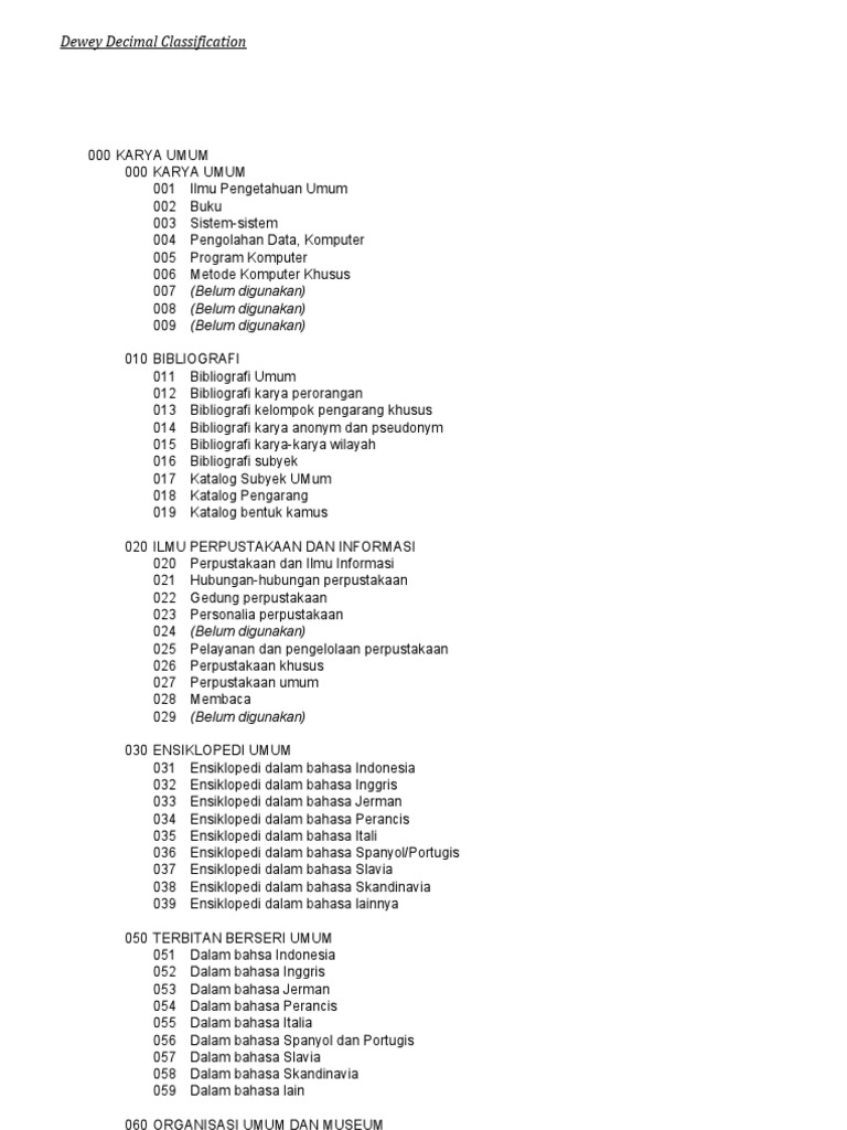 Pengelompokan Buku Menurut Pembagian Terstruktur Mengenai Desimal Dewey (Ddc) Pdf | blog. paperplane