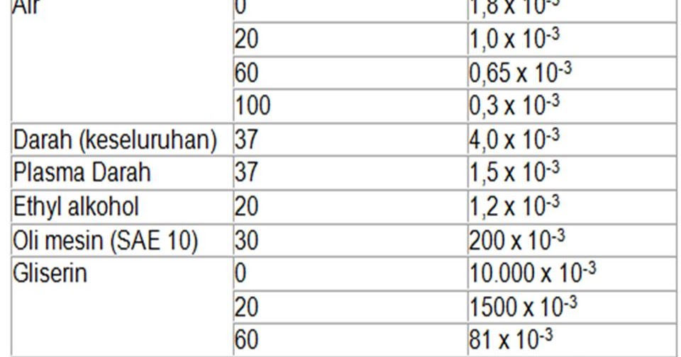 Kehidupan Berbangsa dan Bernegara: Daftar Koefisien Viskositas