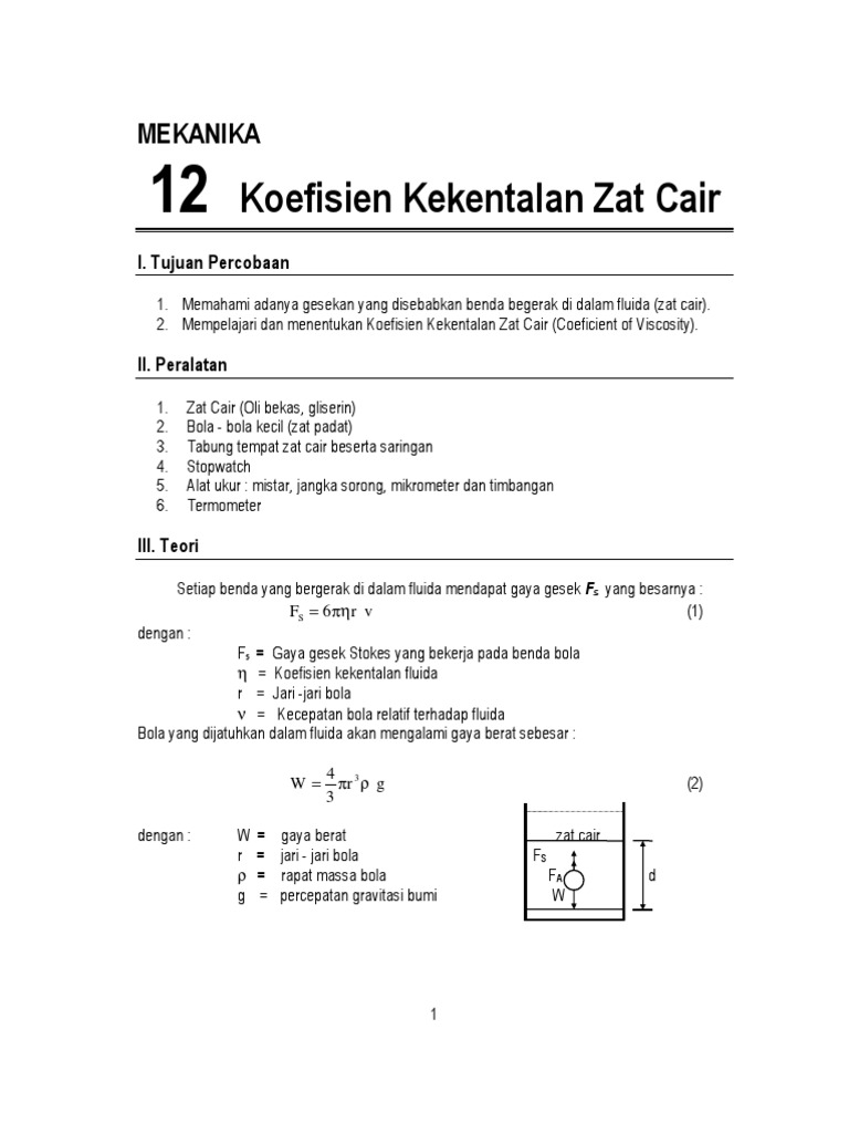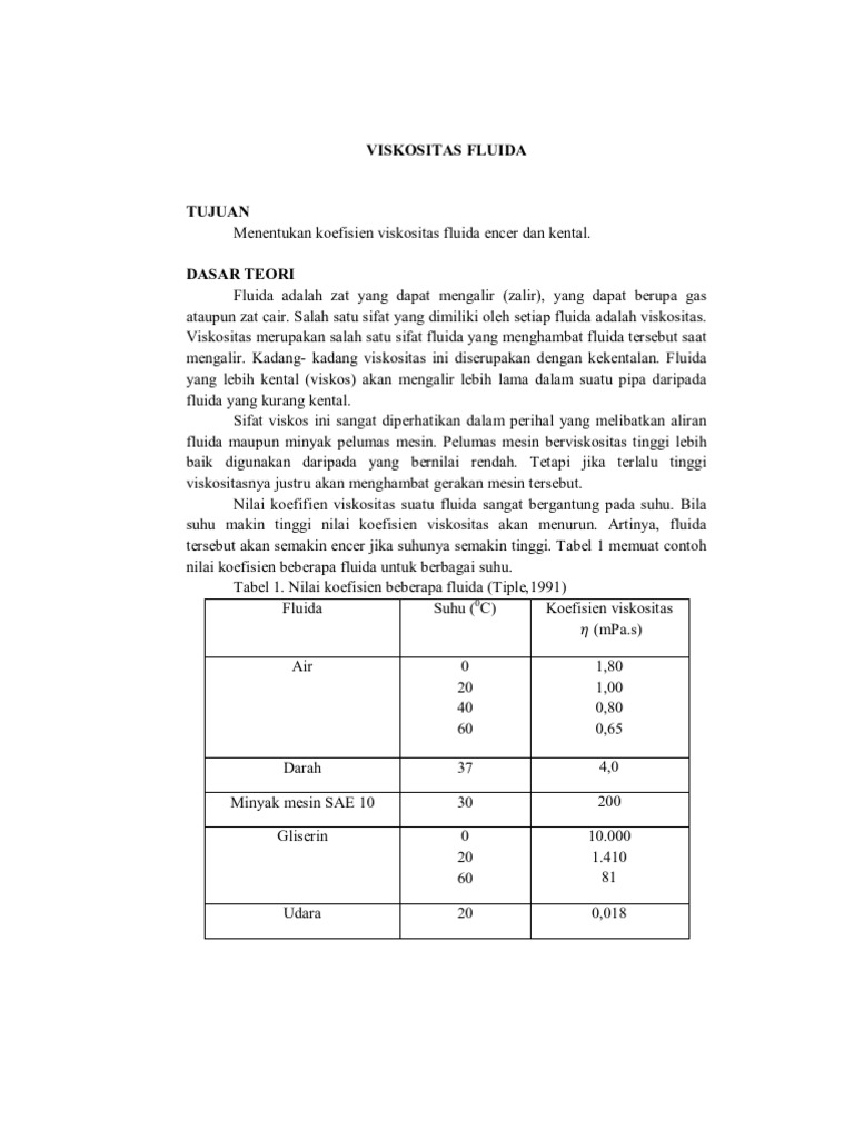 DOC) Laporan Koefisien Kekentalan Zat Cair | Wahdini Ramli - Academia.edu