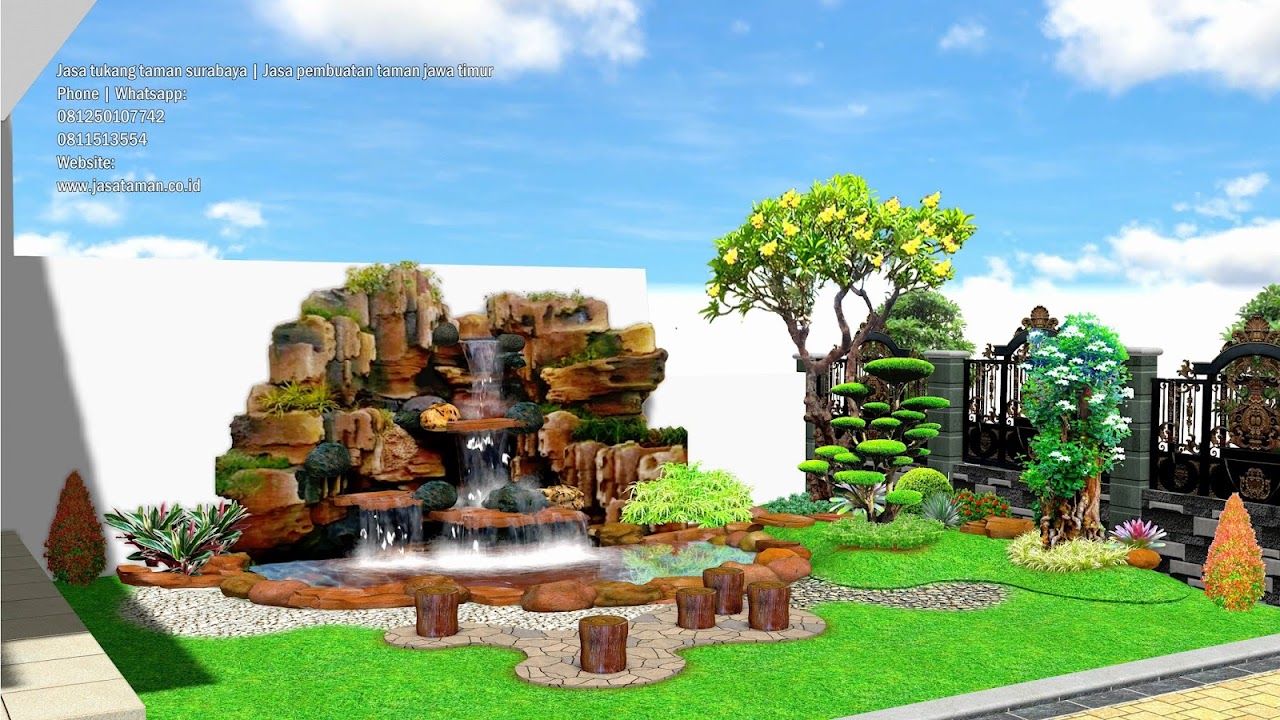 desain taman dan kolam ikan depan rumah - YouTube