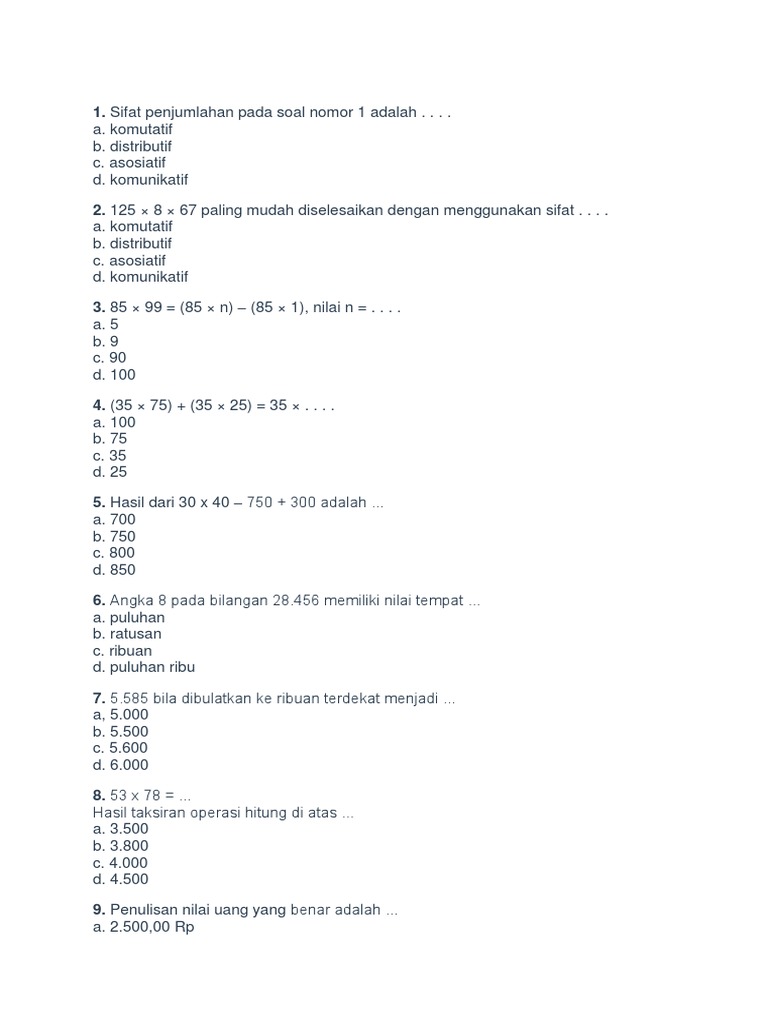 Matematika Sd Mi Kelas 4 Latihan Soal Komutatif - Cute766