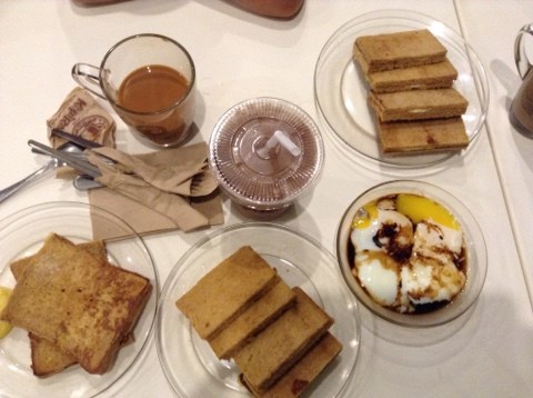 French toast with two boiled eggs and milo dinosaur + Kaya toast …