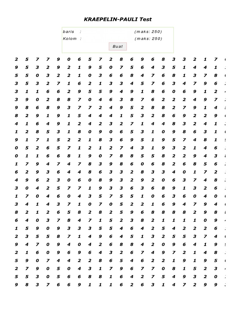 Software Tes Pauli | Program Tes Kraepelin Koran | PSIKOTESV21DA …