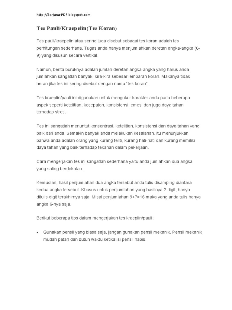 Contoh Soal Psikotes Kraepelin Pdf | kumpulan materi pelajaran dan …