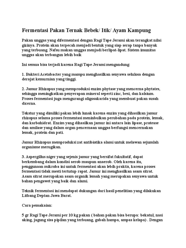 Fermentasi Pakan Ternak Untuk Ternak Unggas Sapi Kambing Mentok …