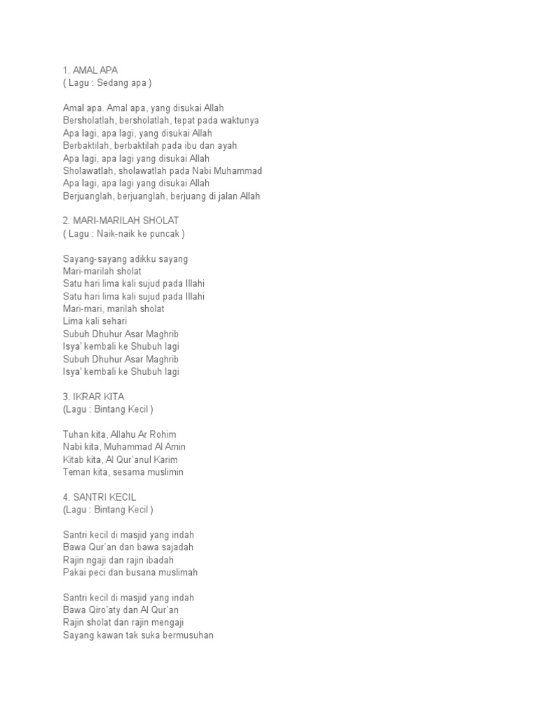 Kumpulan Lirik Lagu Anak Islami Bab 1 - Blog Anak Usia Dini