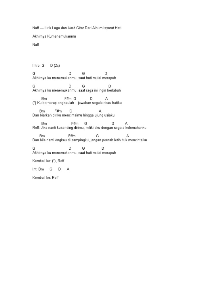 Kunci Gitar Naff - Akhirnya Ku Menemukanmu Chord Dasar Kunci Gitar …