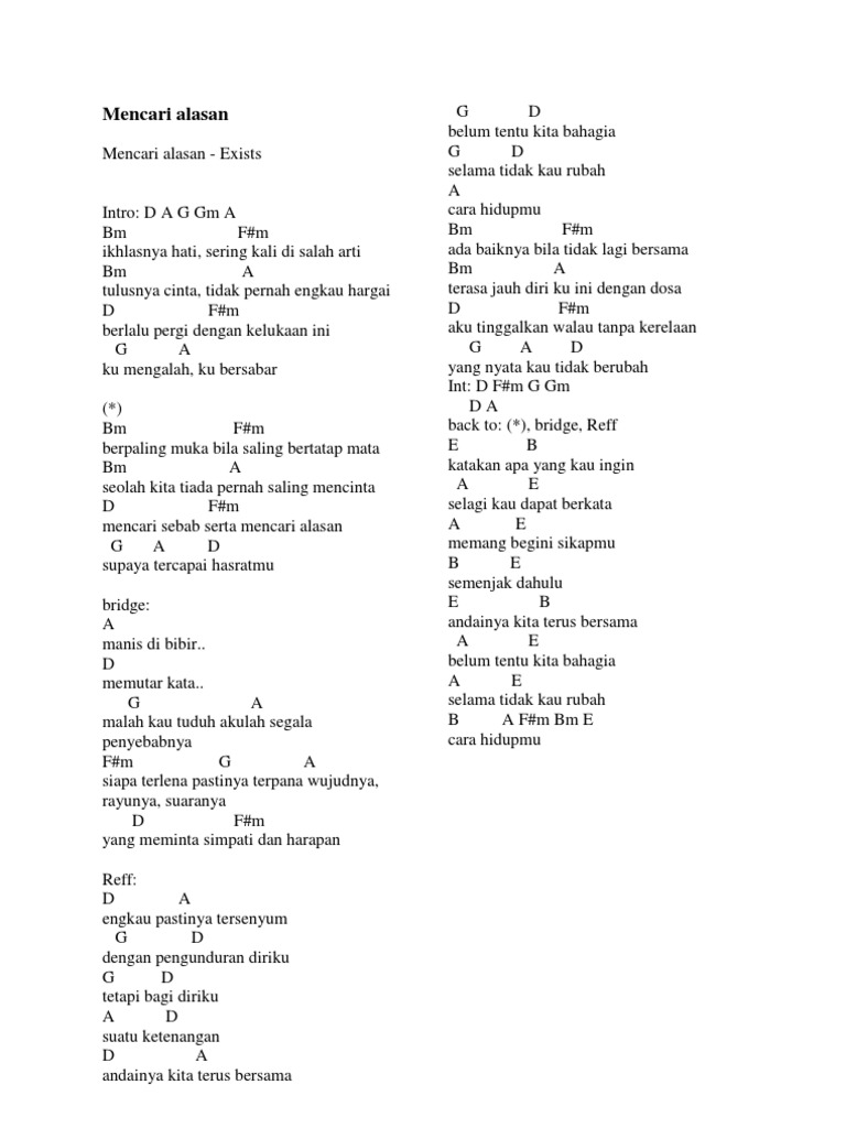 Chord Exist Mencari Alasan, Kunci Dan Chord Lagu Pencarian Chord …