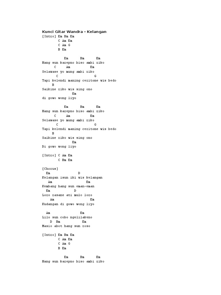 Chord Kelangan - Wandra Original (Banyuwangi) Kunci Gitar …