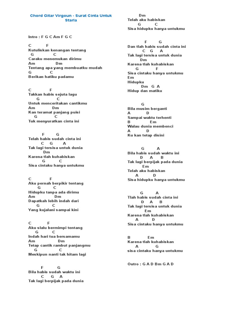 √ Kunci Gitar Surat Cinta untuk Starla - Virgoun | Chord | Lirik …