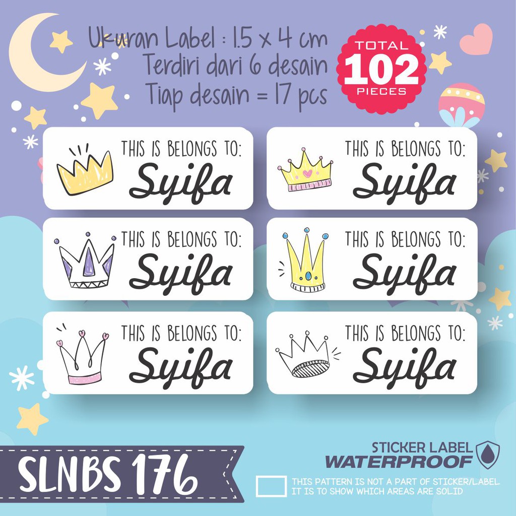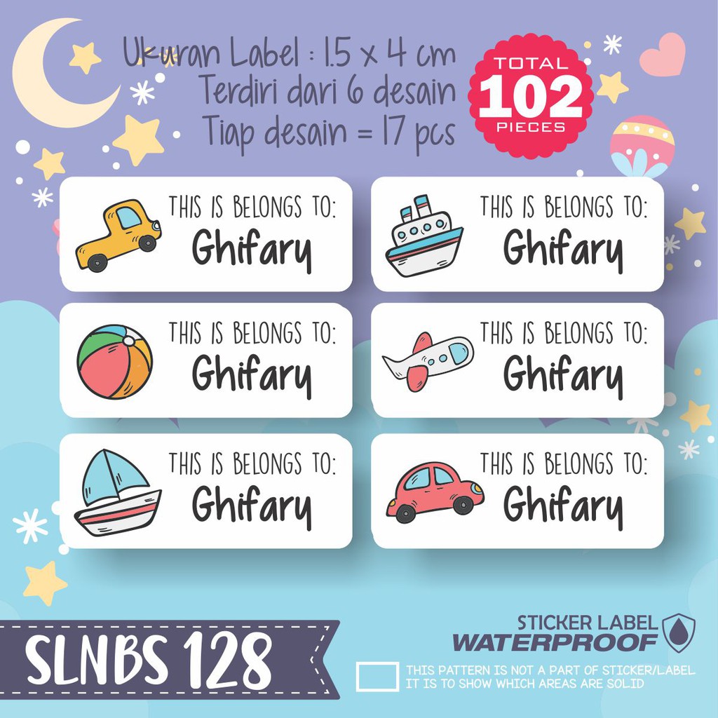 SLNBS-128 sticker label nama anak karakter anti air transparan …