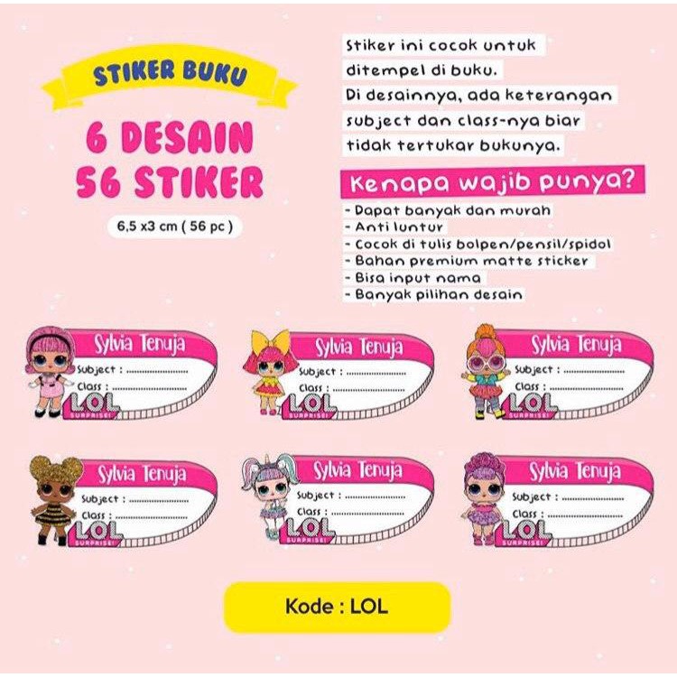 Jual Sticker label nama anak waterproof karakter LOL Suprise …