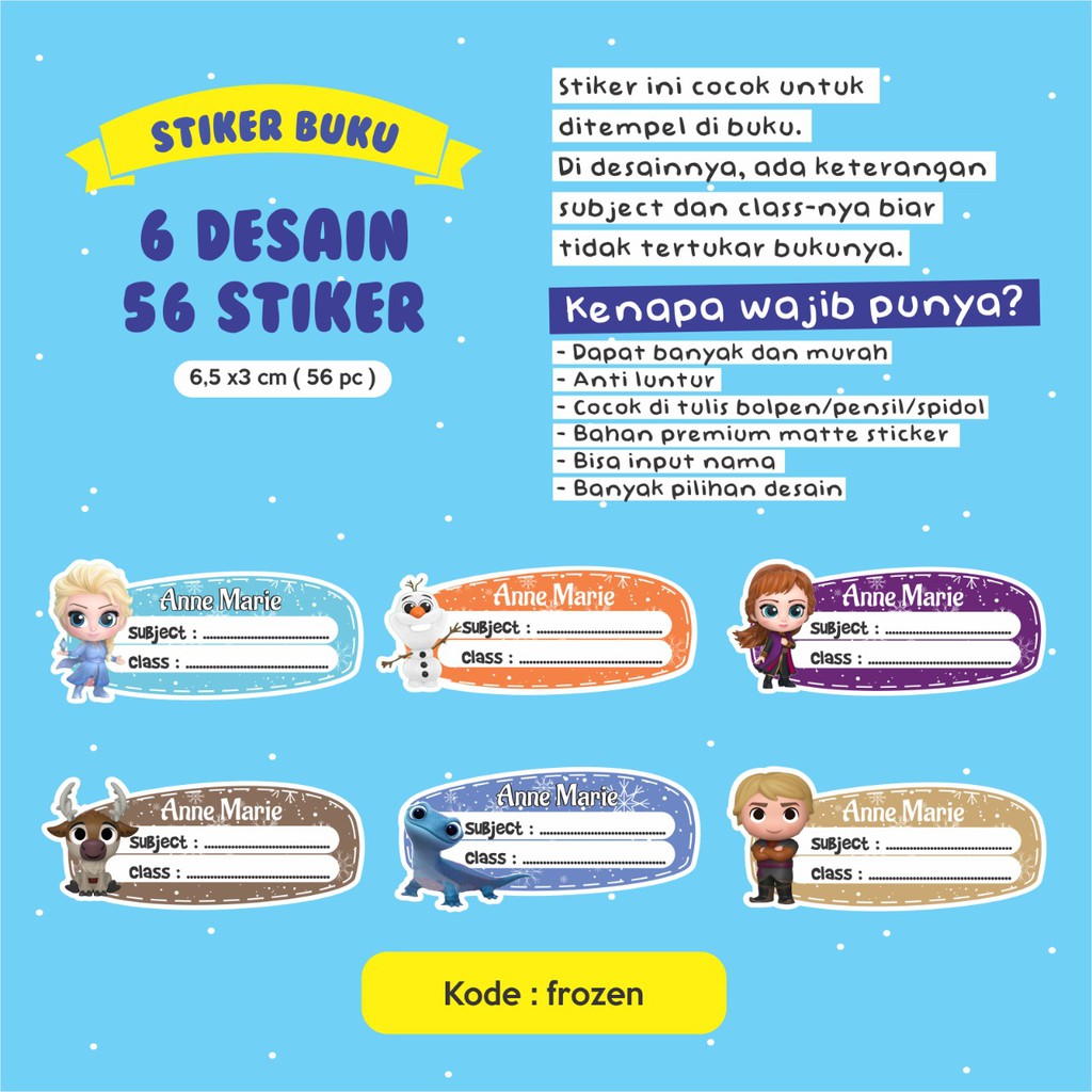 STICKER BUKU / LABEL NAMA ANAK KARAKTER KOSTUM MURAH - Frozen …