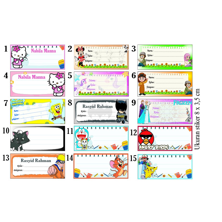 Jual stiker karakter label nama pelajaran anak 3x6cm per-30pcs di …