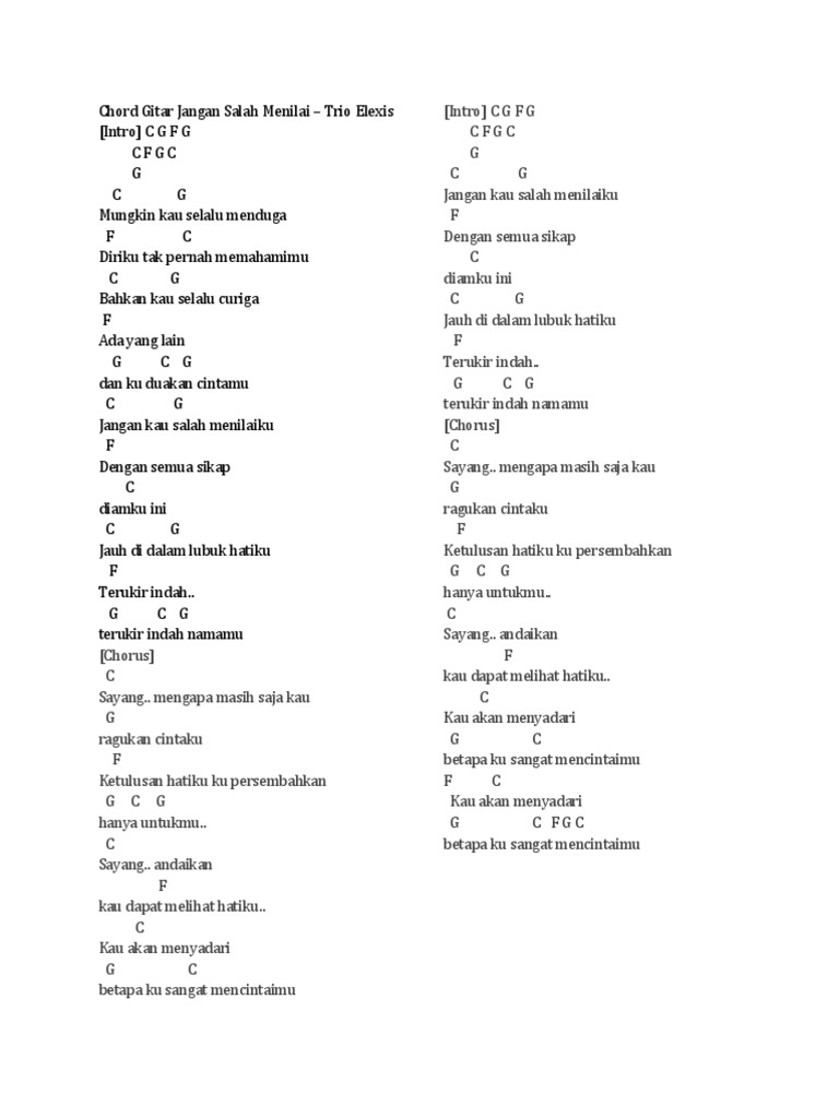 Chord Kunci Gitar Jangan Salah Menilaiku - Elexis Trio - BETA Margitar