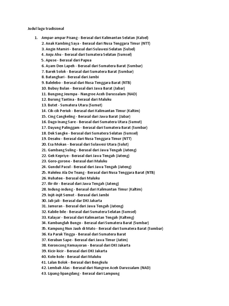 Daftar nama nama lagu daerah 34 propinsi (1)