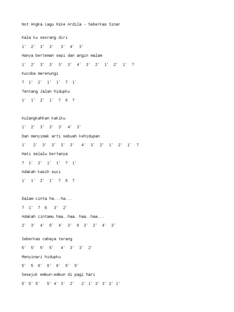 Not Angka Lagu Seberkas Sinar - Nike Ardilla | Dunia Lirik Not Lagu