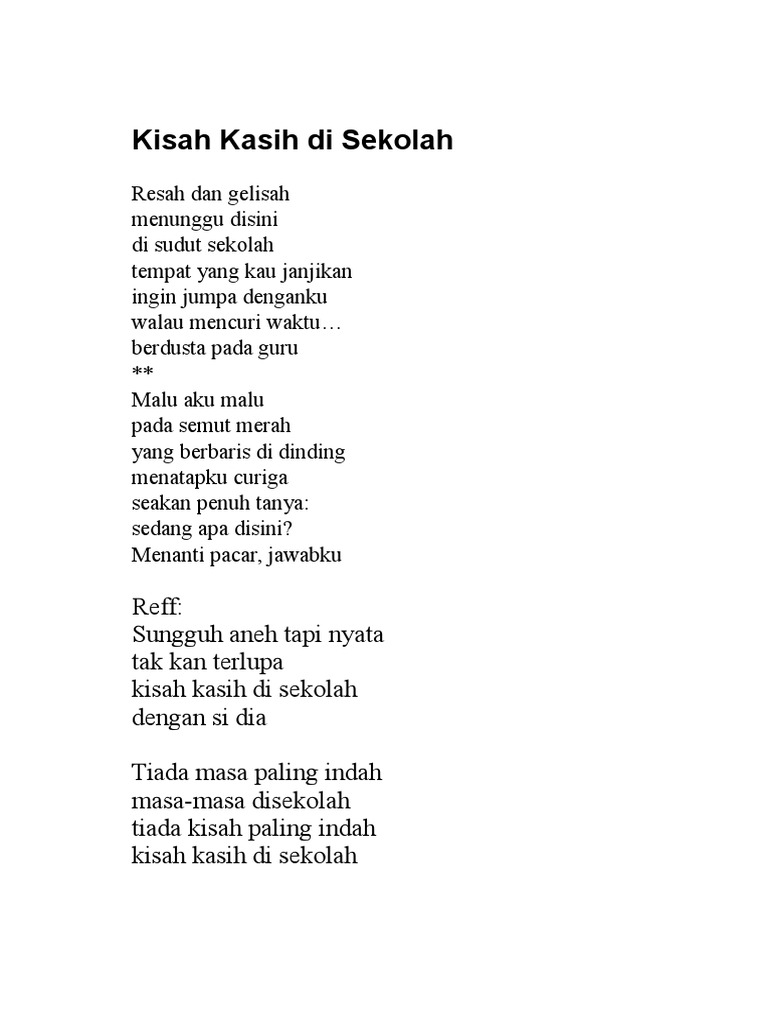 Kisah Kasih di Sekolah - Lirik Lagu Indonesia - Metropublik.com