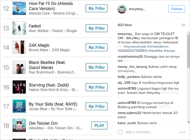 Pamer ‘Om Telolet Om’ Masuk 20 Besar iTunes, iMeyMey Ditagih Konser