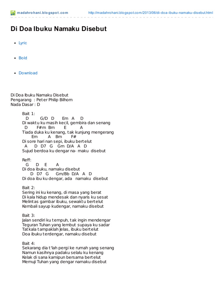 Chord Di Doa Ibuku Namaku Disebut By Lagu Rohani Kristen …