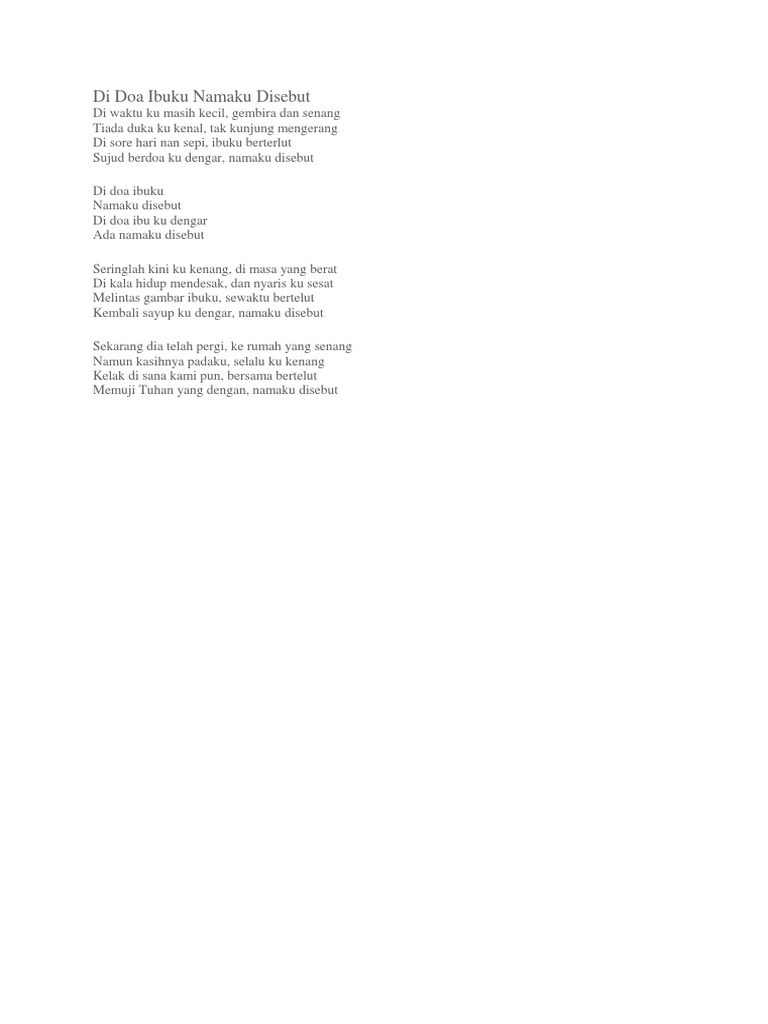 Di Doa Ibuku Namaku Disebut (Lirik & Chord)