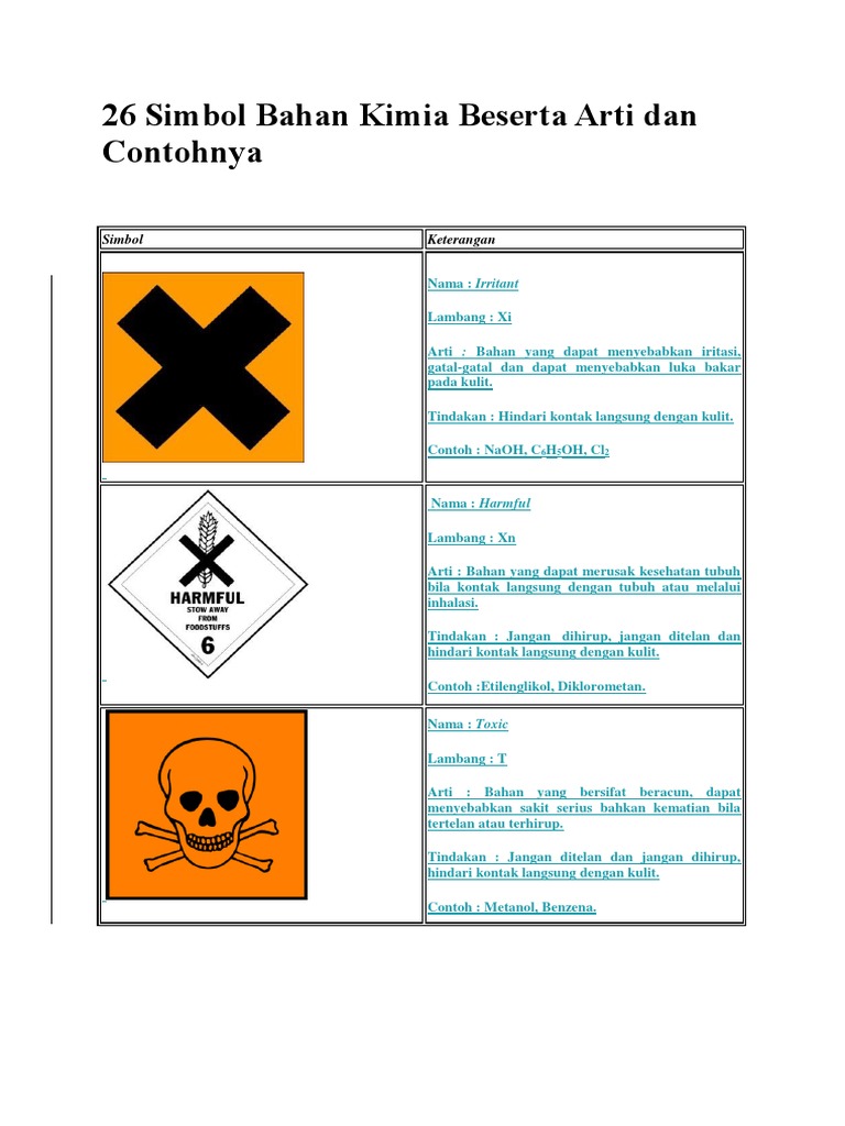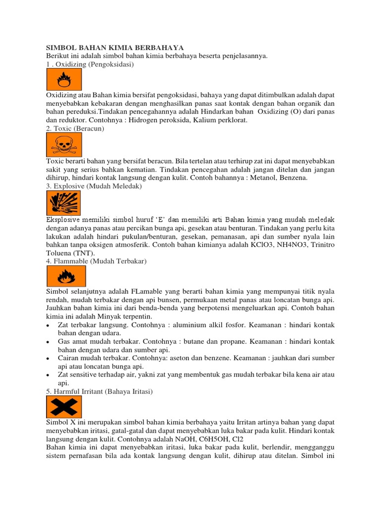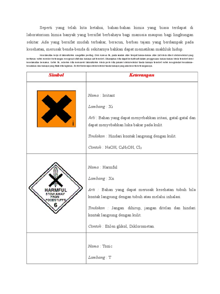Makalah Simbol Bahan Kimia Dan Artinya - Contoh Makalah