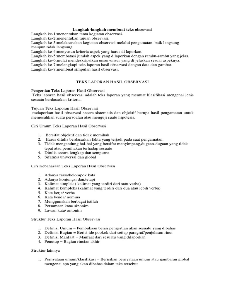 Sebutkan Langkah Langkah Menyusun Teks Laporan Hasil Observasi …