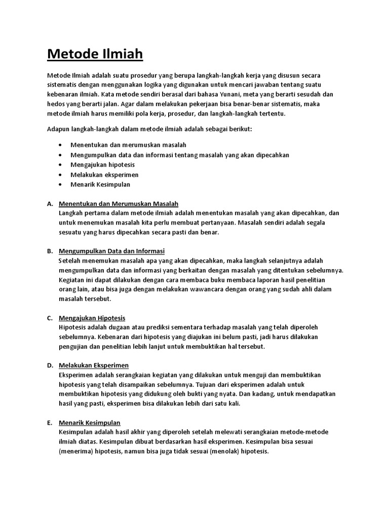 Langkah pertama dalam metode ilmiah adalah melakukan…. A.eksperimen B.hipotensi C.merumuskan - Brainly.co.id