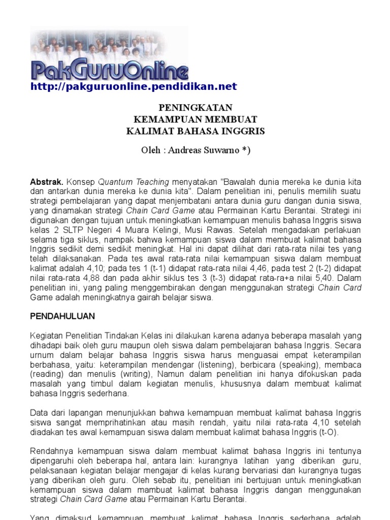 DOC) Peningkatan Kemampuan Membuat Kalimat Bahasa Inggris 1 | ratna dewi - Academia.edu