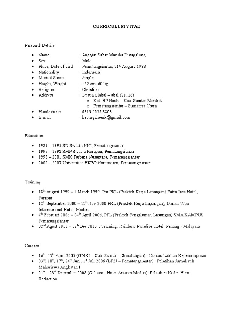 CONTOH CV Dalam Bahasa Inggris | Teachers | Learning