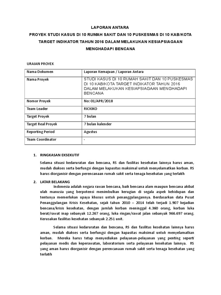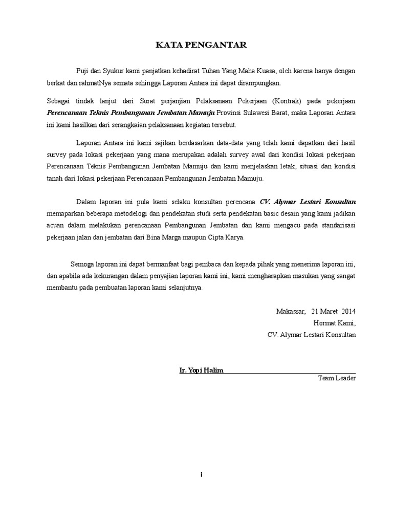 Laporan Antara - Kata Pengantar, Daftar Isi