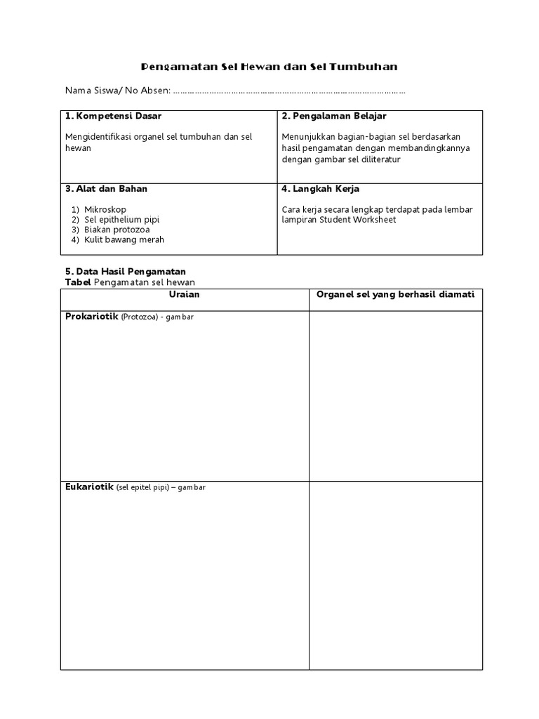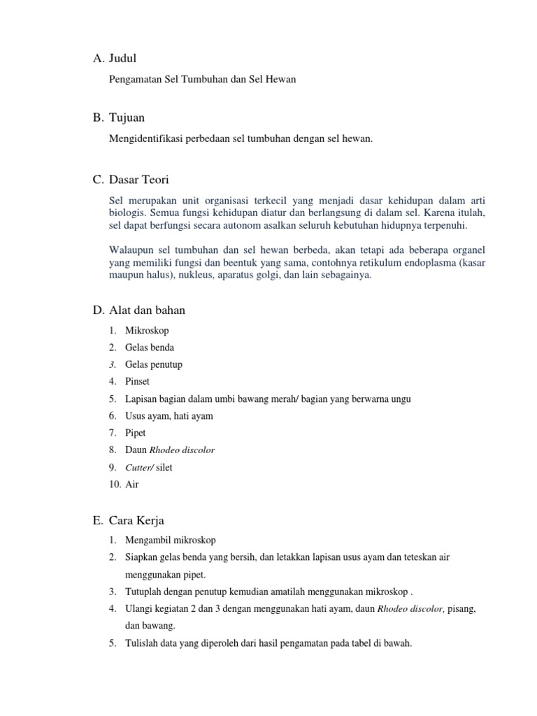 Contoh Laporan Praktikum Biologi Tentang Sel Hewan Dan Tumbuhan - Seputar Laporan