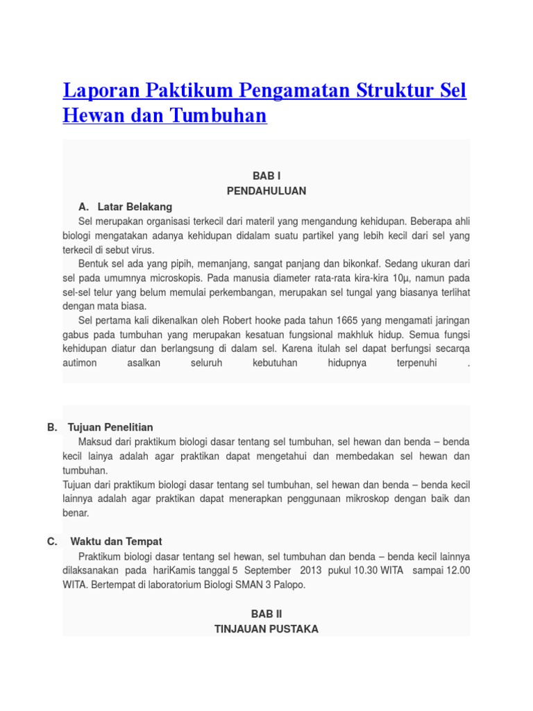 Contoh Laporan Praktikum Biologi Tentang Sel Hewan Dan Tumbuhan - Kumpulan Contoh Laporan