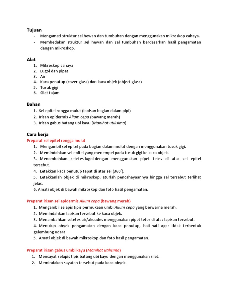 DOC) LAPORAN PENGAMATAN STRUKTUR SEL BAWANG MERAH | Jody Kumara - Academia.edu